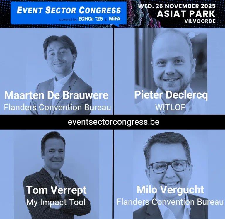 19 november 2025Op 26 november zullen zo’n 40 sprekers kennis delen en debatteren over urgente onderwerpen op het Event Sector Congress, powered by ECHO 25 & MeetinFlandersAcademy. Het programma is onderverdeeld in een plenair gedeelte en drie thematische tracks. In deze nieuwsbrief stellen wij het programma van de track THE POWER OF IMPACT aan u voor.
