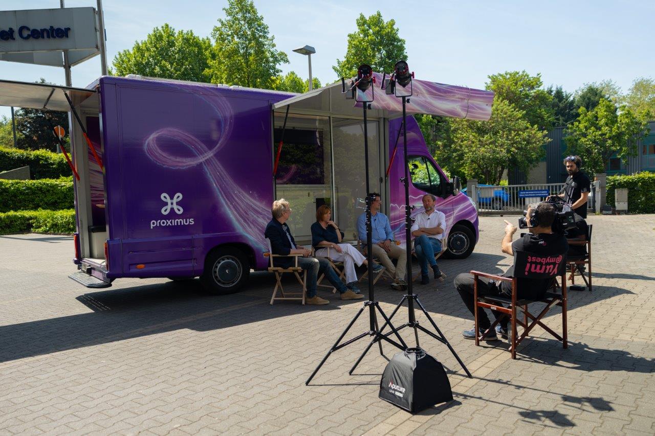 In plaats van een traditionele top-down strategie werd gekozen voor een pre-recorded TV-show in een branded Proximus-van, die door het land trok. Een interne medewerker fungeerde als host, terwijl collega’s en experts hun authentieke verhalen en inzichten deelden. De stops langs winkels, klantlocaties en operationele hotspots boden een cinematische, herkenbare setting die de verhalen van medewerkers versterkte. De opnames werden ondersteund door broadcast-kwaliteit AV-productie, AI-ondertiteling en een warme, toegankelijke vormgeving, waardoor inclusiviteit en professionaliteit hand in hand gingen.