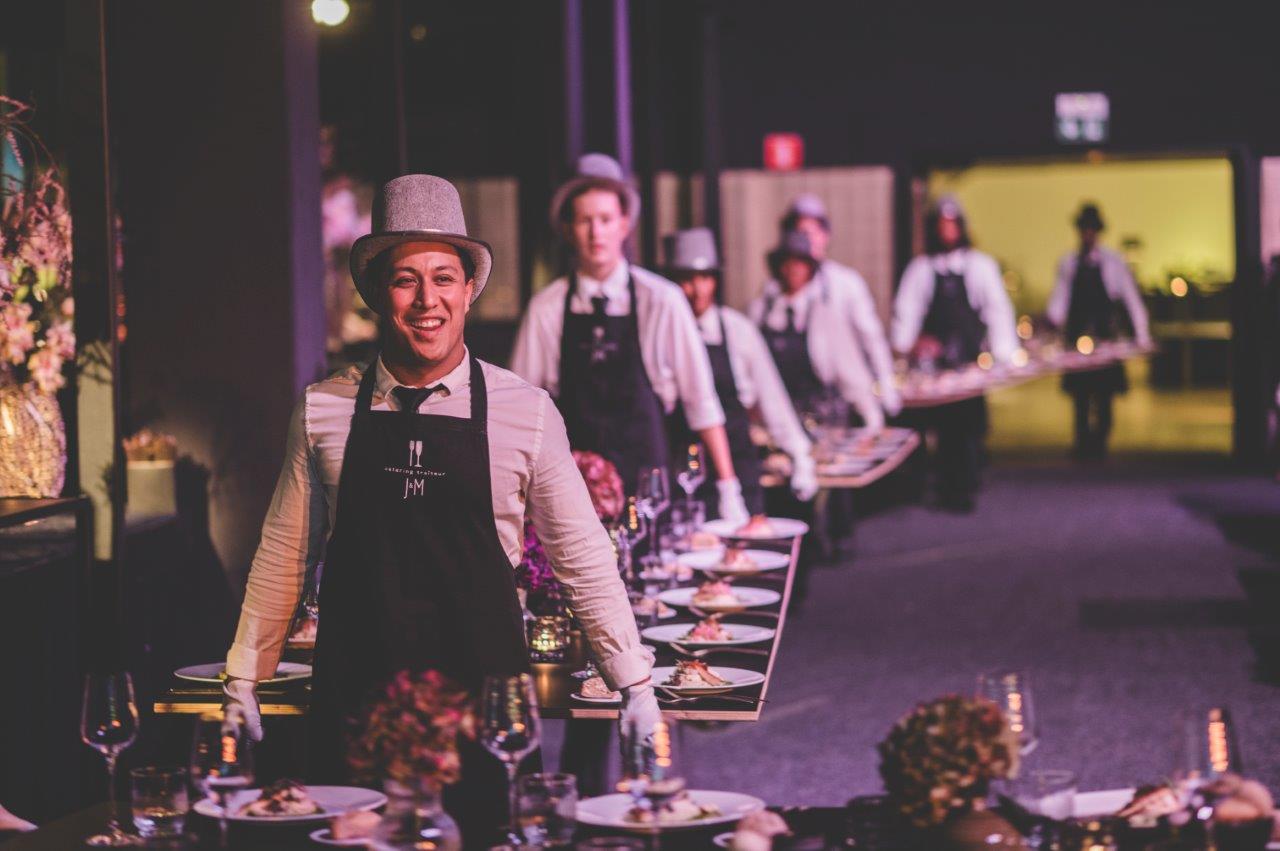 Ensuite, les participants étaient conviés à passer à table. Mais ! Seuls les tréteaux étaient installés. Le repas était en effet organisé selon un concept unique : le reste des tables, déjà dressées, était transporté et mis en place en grande cérémonie sous les yeux des convives. Durant le repas, les invités étaient divertis par diverses anecdotes et faits intéressants concernant Europabank circulant parmi les tables.
