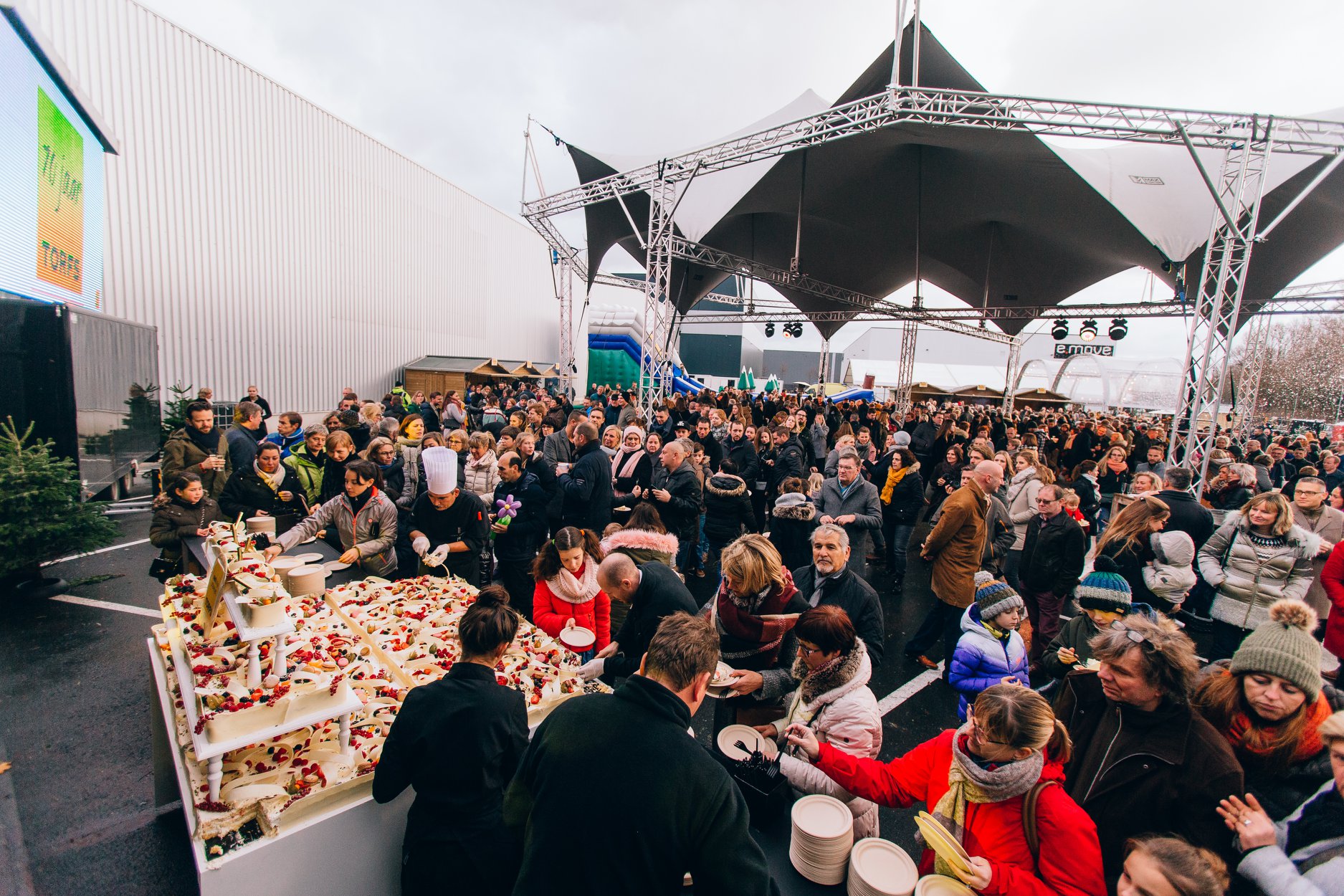 Les accomplissements à célébrer ne manquaient donc pas et JADA events a mis sur pied un magnifique événement sur le site logistique des Chaussures Torfs à Temse. L’intérieur comme l’extérieur avait été transformé en parc d’attractions hivernal, avec des chalets proposant boissons et nourriture, une visite guidée passionnante du cœur logistique de l’entreprise, un gâteau d’anniversaire pointure 48 et de nombreuses performances et animations aussi confortables pour les participants qu’une paire de pantoufles. Tout le monde était absolument rayonnant.
