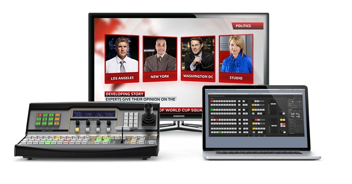 L’option ‘SuperSource’ crée tout un panel de possibilités pour les présentations professionnelles. Cela permet de diffuser 4 sources différentes simultanément sur l’écran mais aussi d’animer l’arrière-plan et les titres. Les spectateurs seront ainsi totalement immergés dans votre présentation (de produit), portée par une nouvelle dynamique.