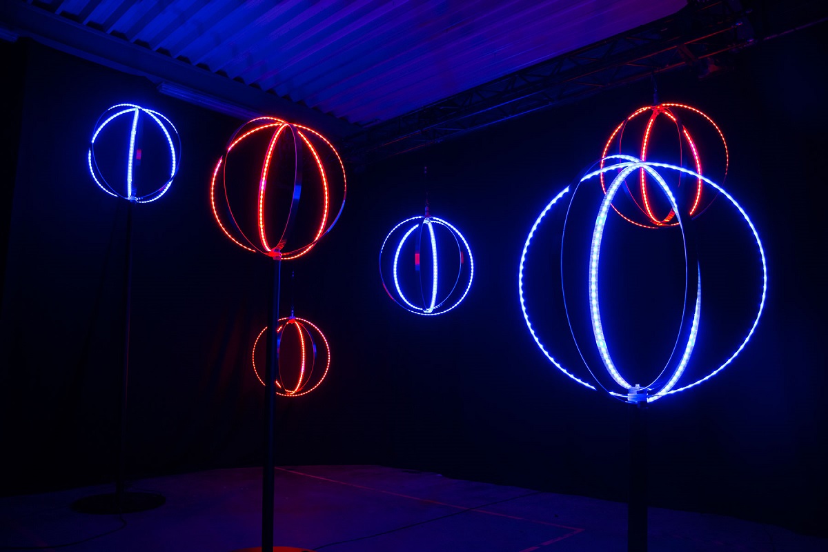 Art Of Confusion ne fait pas uniquement de la location et de la distribution d’armatures existantes, la société a aussi des créations propres dans son assortiment. Les prototypes des LED Rings ont été peaufinés et les premiers modèles achevés ont subi avec succès leur baptême du feu. Équipée de bandes RGB pixellisées dernier cri, cette armature fait véritablement sensation. Grâce aux différentes possibilités de montage, elle peut être utilisée sur n’importe quel type d’événement, intérieur ou extérieur.