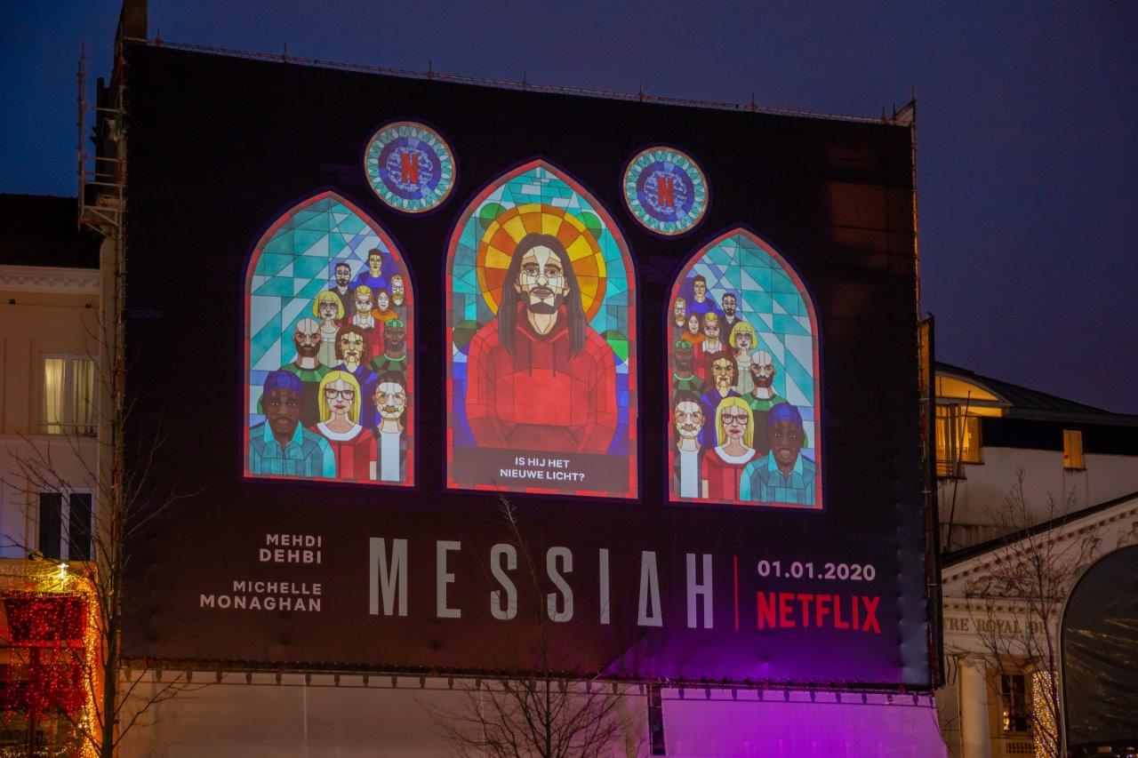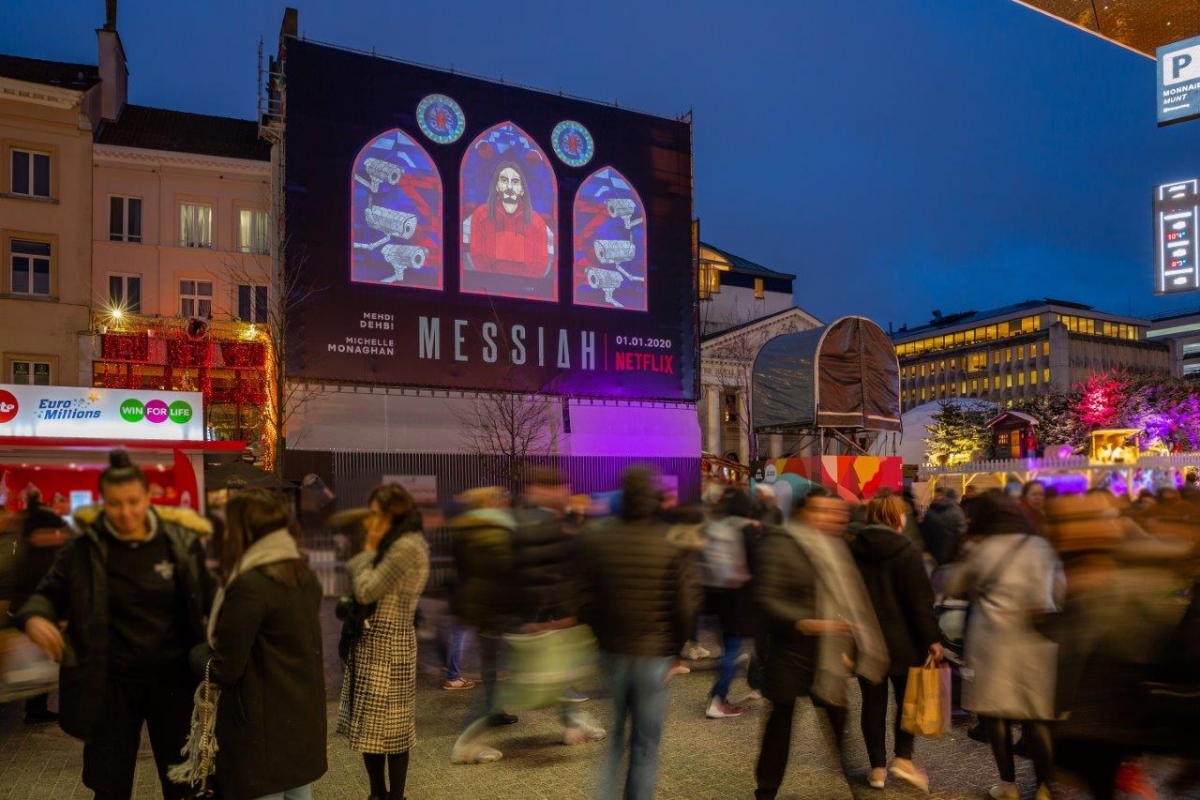 26 août 2020Durant 15 jours en décembre dernier, ADC Production a, pour l’agence Pop Media, projeté un mapping sur bâche imprimée avec insertion d’images pour promouvoir Messiah, la nouvelle grosse production exclusive de NetFlix, le leader mondial du streaming. Situé sur la Place de la Monnaie, ce dispositif promotionnel a bénéficié d’une énorme visibilité, grâce aussi au passage généré par les Plaisirs d’Hiver.