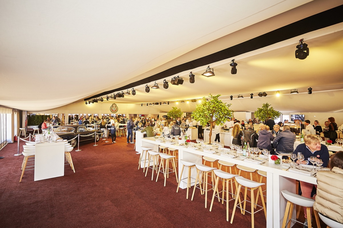 24Seven avait fait appel à Deco-Fact pour l’habillage d’un chapiteau à étage (25 m x 25 m) et du hall Alu qui le jouxtait (25 m x 50 m). Celui-ci était occupé par une célèbre salle de vente : Bonhams, qui mettait en vente des voitures récentes et de collection exclusives.