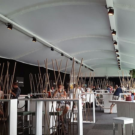 Un avis partagé par de nombreux artistes. Et c'est là qu'œuvrait Deco Fact de Maasmechelen. A la demande de Live Nation, Deco Fact a installé les étoffes dans la zone catering des artistes et la zone VIP.
