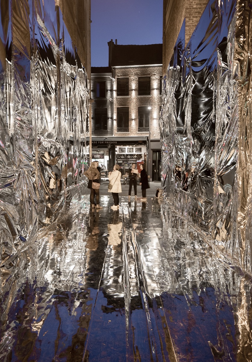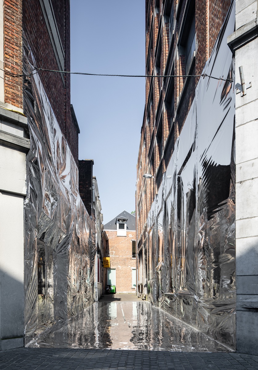 28 juin 2018Les habitants de Louvain en Belgique n’en reviennent pas encore … Quelle surprise de découvrir la rue "Hanengang" partiellement recouverte du tapis Harlequin Hi-Shine Silver, pour un effet miroir garanti. Sans compter que l’effet se prolongeait sur les murs recouverts pour l’occasion d’un film aluminium ultra-résistant. Un vrai palais des mille et une glaces !