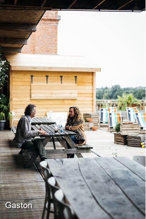 En plus de sa grande salle sur le toit, Gaston dispose aussi d’une grande terrasse en partie couverte et d’un petit espace de réunion couvert.