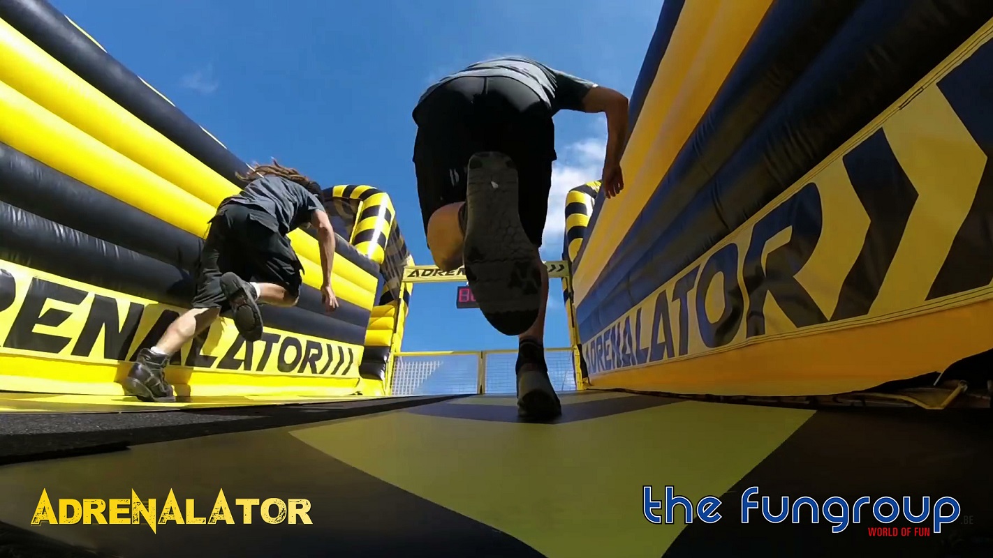 ‘Affrontez la vitesse avec l’ADRENALATOR et atteignez le sommet avant votre adversaire’. La toute dernière attraction de The Fungroup se présente comme un défi à ne pas manquer pour tous les sportifs à l’esprit combatif. La vitesse des tapis de course défilant en sens inverse est réglable, ce qui fait que l’ADRENALATOR offre un challenge de taille mais adapté aux jeunes et moins jeunes.