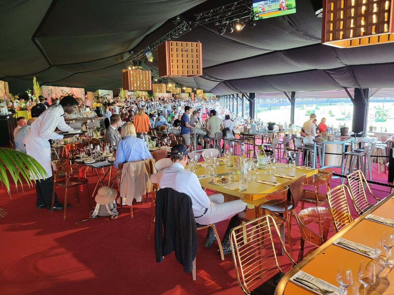 Pour les espaces VIP et les zones d’accueil, l’entreprise a aménagé un impressionnant hall en aluminium de 170 mètres de long, relié à une tente Skyline à deux étages de 100 mètres. Le reste des infrastructures incluaient un restaurant pour le public, un village avec divers exposants, plusieurs chapiteaux pour les cuisines et les bars, des installations sanitaires, des bureaux, ainsi que divers espaces pour la presse, le personnel et le stockage. Une véritable prouesse technique, étant donné les dénivellations du terrain allant jusqu’à 6,5 mètres, qui ont été compensées par un système de sous-structures.