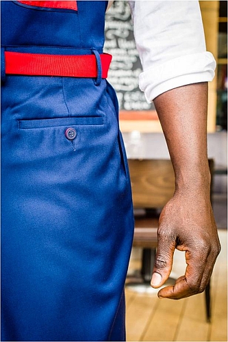Une grande partie de l'équipe de l'hôtel porte un uniforme. Et ces uniformes s'usent, naturellement. Lies Van Assche d'Atelier Doek a accepté de donner une seconde vie à ces uniformes. Ce week-end, dans le cadre de la semaine de la mode "SHOW2015", les serveurs du restaurant et du bar portent des tabliers créés par Lies et son équipe à partir des uniformes des réceptionnistes.