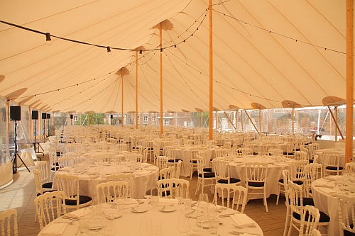 Organic Concept avait également prévu un chapiteau cuisine de 10 x 28 m abritant le catering. Les chapiteaux étaient élégamment décorés de guirlandes, suspendues autour et à l'intérieur des différentes structures.