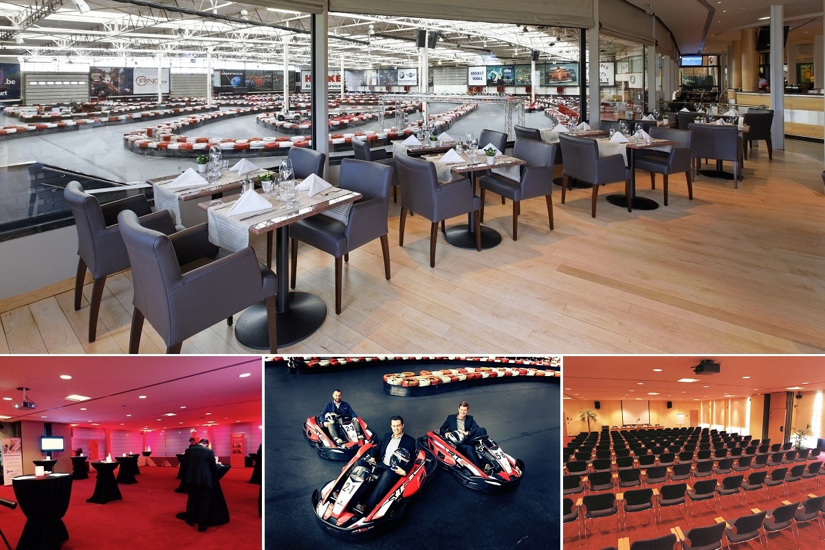 Les entreprises et organisations à la recherche d’un lieu surprenant et dynamique pour une réunion, un événement professionnel et/ou consommateurs, un lancement de produit, une conférence de presse… trouvent toujours leur bonheur à BRUSSELS KART. On y trouve différentes belles salles, avec une superficie allant de 12 à 300 m², toutes équipées de matériel audiovisuel moderne. Les salles Estoril et Monza offrent une magnifique vue sur le jardin, la salle Monaco a une vue panoramique sur le circuit de kart, qui est l’un des atouts majeurs de BRUSSELS KART.