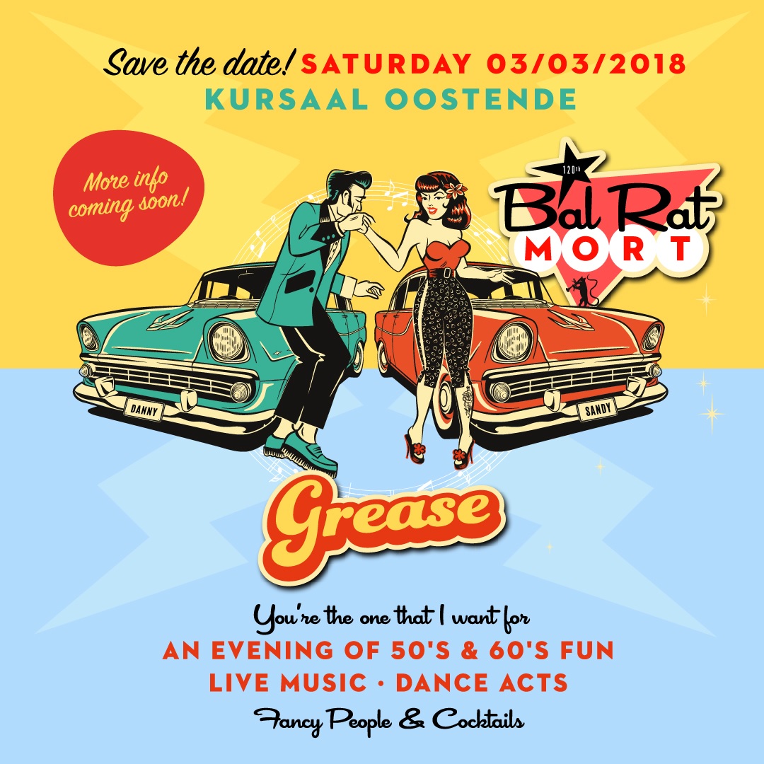 15 janvier 2018Pour sa 120ème édition, le Bal du Rat Mort a choisi le thème ‘Grease, an evening of 50’s & 60’s fun’. Sautez dans votre Cadillac et venez faire la fête le samedi 3 mars au Kursaal Ostende au plus beau bal thématique du pays !