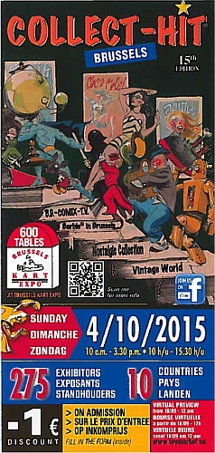 17 septembre 2015Bienvenue à la 15ème foire "Collect-Hit" qui se déroulera le dimanche 4 octobre 2015 de 10h à 15h30 dans le hall 2 de BRUSSELS KART EXPO. BRUSSELS KART EXPO est situé juste à côté du ring de Bruxelles et de l'E40, et dispose d'un vaste parking de 2500 places.