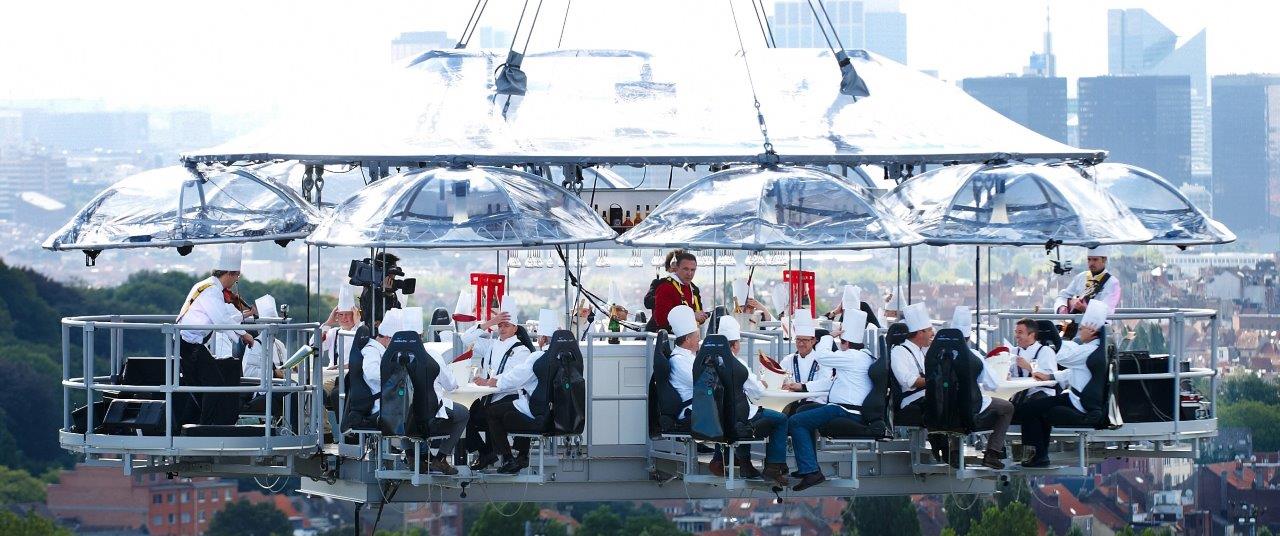 14 février 2020Dinner in the Sky et Gracias sont fiers de vous présenter une toute nouvelle configuration de la plus haute table gastronomique du pays. L’ancienne disposition d’une seule grande table fait place à une plate-forme flottante se composant de 8 tables individuelles de 4 personnes chacune.