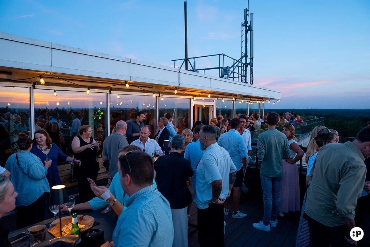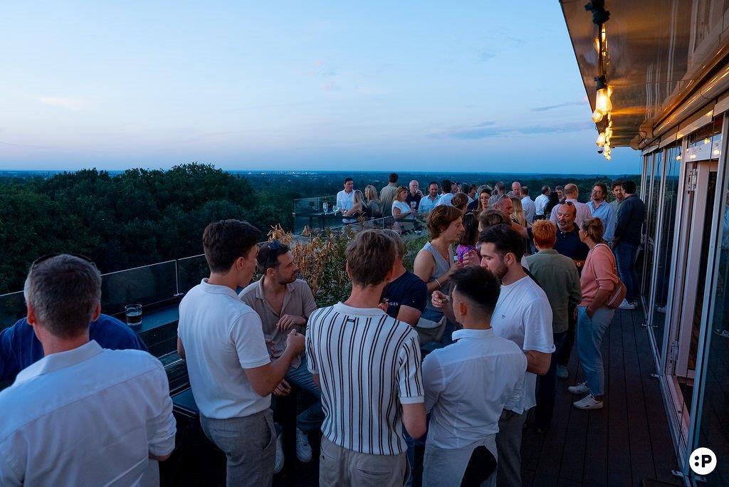 De weergoden zorgden voor een zomerse sfeer op deze unieke locatie. De aanwezige eventprofessionals werden – naast de lekkernijen van cateraar KTCHN – getrakteerd op het mooiste uitzicht van Brussel omringd door het prachtige Zoniënwoud, en met een stralende zonsondergang.