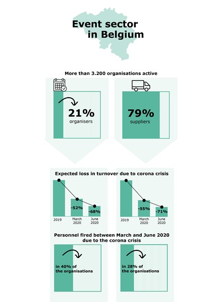 Deze ontslagen zijn het gevolg van de vele events die sinds het begin van de crisis zijn geannuleerd of uitgesteld. Het gaat daarbij om publieksevenementen, maar ook om bedrijfsevenementen. "Voor een derde van de organisatoren zijn nu al alle geplande events geannuleerd tot het einde van het jaar. (...)", zo legt Joris Verhulst, onderzoeker bij Public Impact, uit. "Voor de meeste organisatoren blijkt 2020 een verloren jaar."