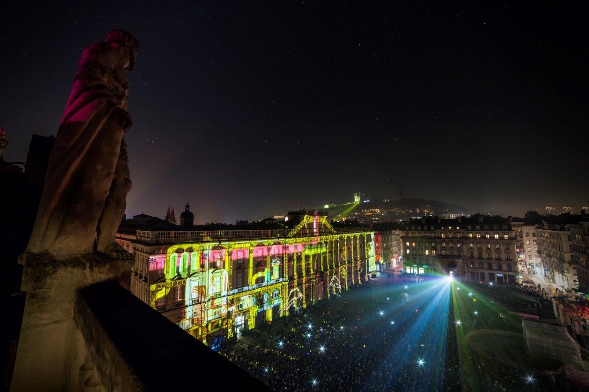 Voor JCO (Jacques Couturier Organisation), een van de bureaus die een van de verschillende aanbestedingen van de Stad Lyon in het kader van zijn Fête des Lumières 2016 heeft binnengehaald, heeft ADC Production gezorgd voor de verlichting en de projectie van afbeeldingen op de gebouwen van het Stadhuis en het Paleis voor Schone Kunsten, gelegen op de Place des Terreaux, in het hart van het schiereiland van Lyon.