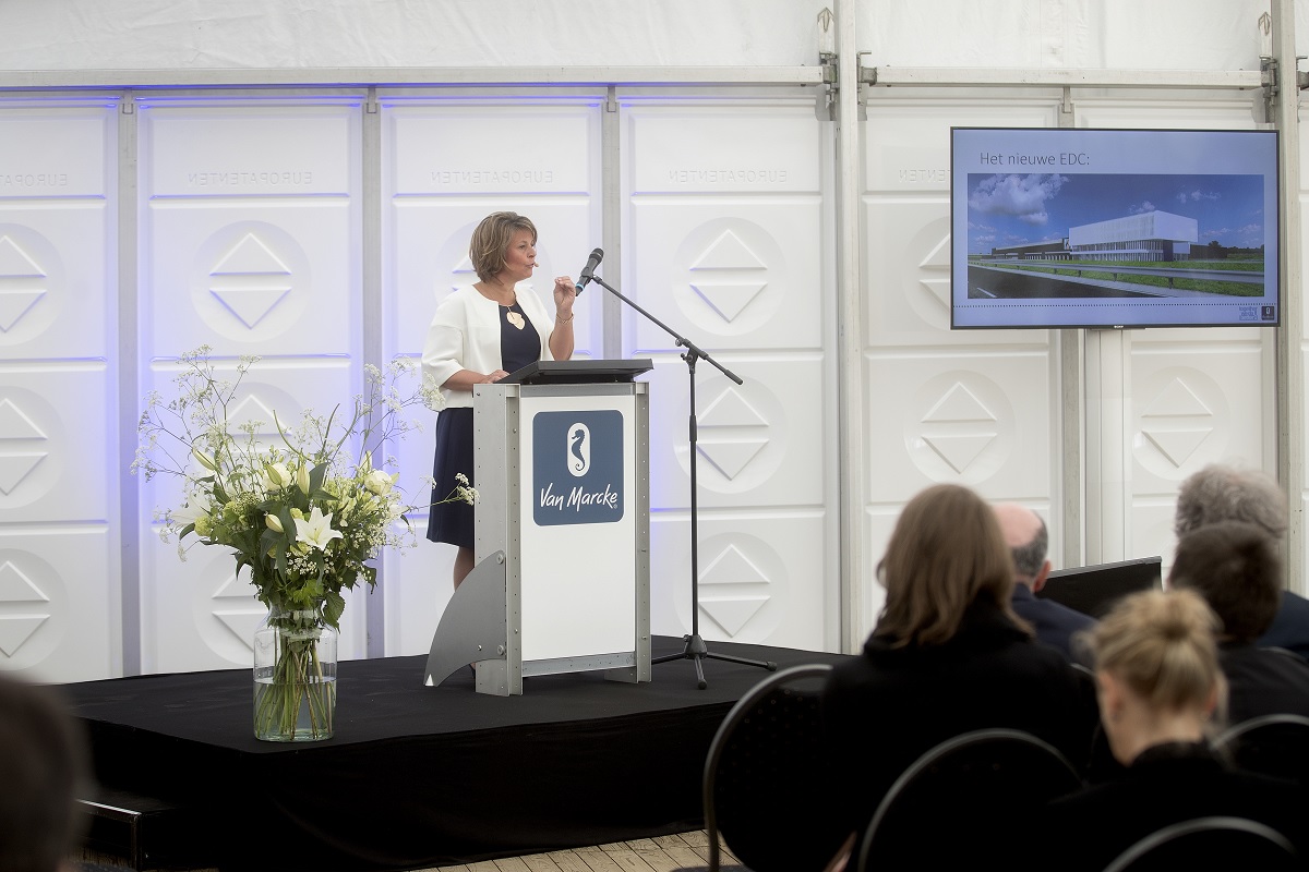 “Met de bouw van dit nieuwe distributiecentrum versterken we onze band met de regio en garanderen we blijvende werkzekerheid voor onze mensen. En dat allemaal zonder het milieu extra te belasten.” Caroline Van Marcke – CEO