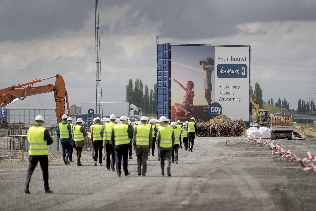 22 juni 2017De familiale groep Van Marcke, distributeur van sanitair en centrale verwarming, investeert in een nieuw distributiecentrum op LAR-Zuid in Kortrijk. Met de nieuwe en hyperduurzame locatie centraliseert het familiebedrijf onder leiding van Caroline Van Marcke zijn logistieke diensten voor Europa. De werken zijn reeds volop bezig.