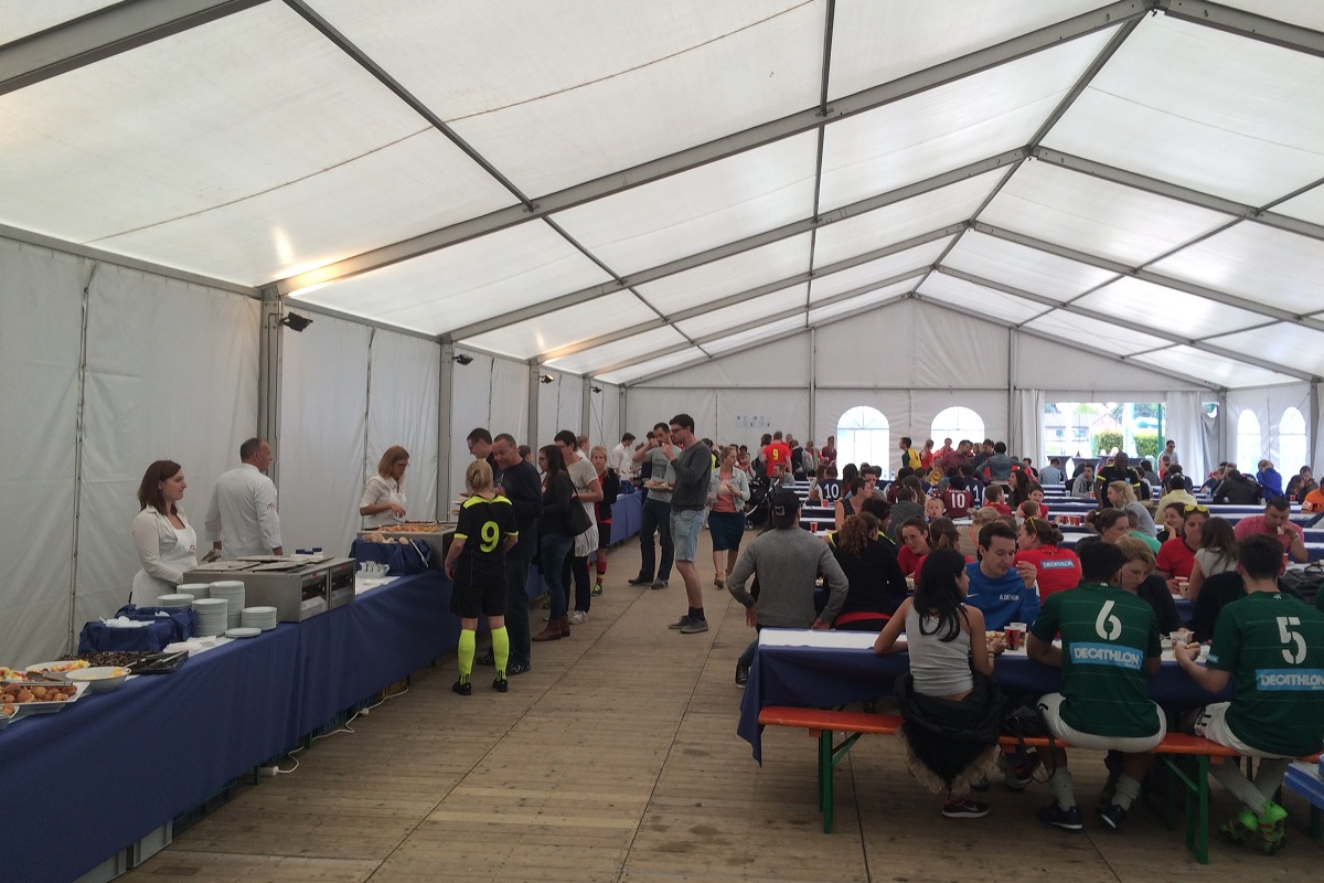 Voor de catering ’s middags schakelde Sportizon de diensten van Repas Catering in. “Zij hebben een zogenaamd ‘four corners’ buffet verzorgd, waarbij een uitgebreid aanbod aan eten in elke hoek van de tent werd voorzien en dat telkens rond een ander thema. De deelnemers konden kiezen uit onder meer healthy food, barbecue, Spaans, … Het grote voordeel van Repas Catering is, naast het feit dat ze kwalitatief hoogwaardige gerechten voorschotelen, de enorme flexibiliteit van het team onder leiding van Jeff Philipsen. Repas Catering past zich niet alleen vlot aan de wensen van de klant aan, maar denkt ook mee en komt zelf met goede ideeën op de proppen. Op die manier werken we samen aan een geslaagd geheel én dus ook een tevreden klant. Repas is eigenlijk veel meer dan zomaar een leverancier van eten en drinken. Zij bieden een duidelijke meerwaarde en elke keer opnieuw is hun werk dik in orde!”