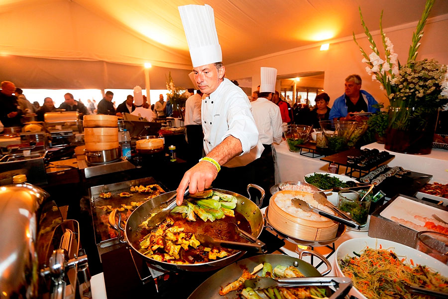 "We hebben zeer gevarieerde buffetten aangeboden via een livecooking formule. Maar het hoogtepunt van de show was opnieuw onze kip-aan-het-spit op zondag. Om dit te verwezenlijken, zetten we een goed zichtbare braadspit achter een groot buffet, waarrond de genodigden konden draaien", zo legt Jean-Claude Lovenweent van Choux de Bruxelles uit.