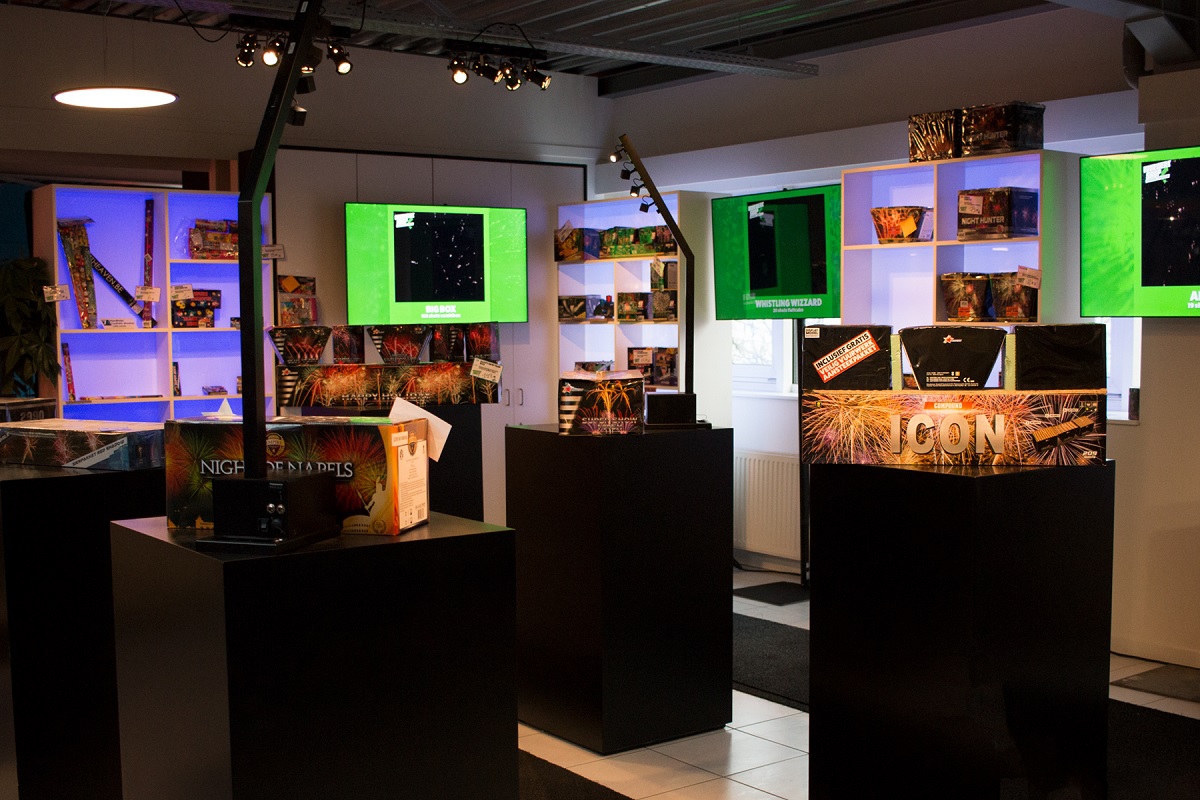 Vorig jaar investeerde 7theaven al in een extra bunker met state-of-the-art brandbeveiliging waarin tot 150 kg 1.4 G pyrotechnische sas opgeslagen mag worden en dit jaar werd ook de vuurwerkshop zelf verhuisd naar het nieuwe gebouw op de Heiveldekens 20 in Kontich. De gloednieuwe showroom biedt nu nog meer plaats om het zeer ruime aanbod comfortabel tentoon te stellen.