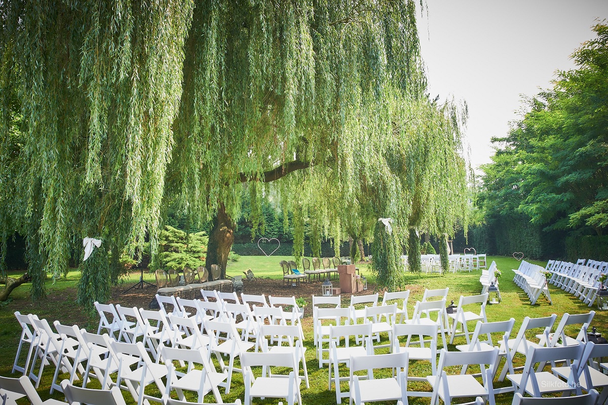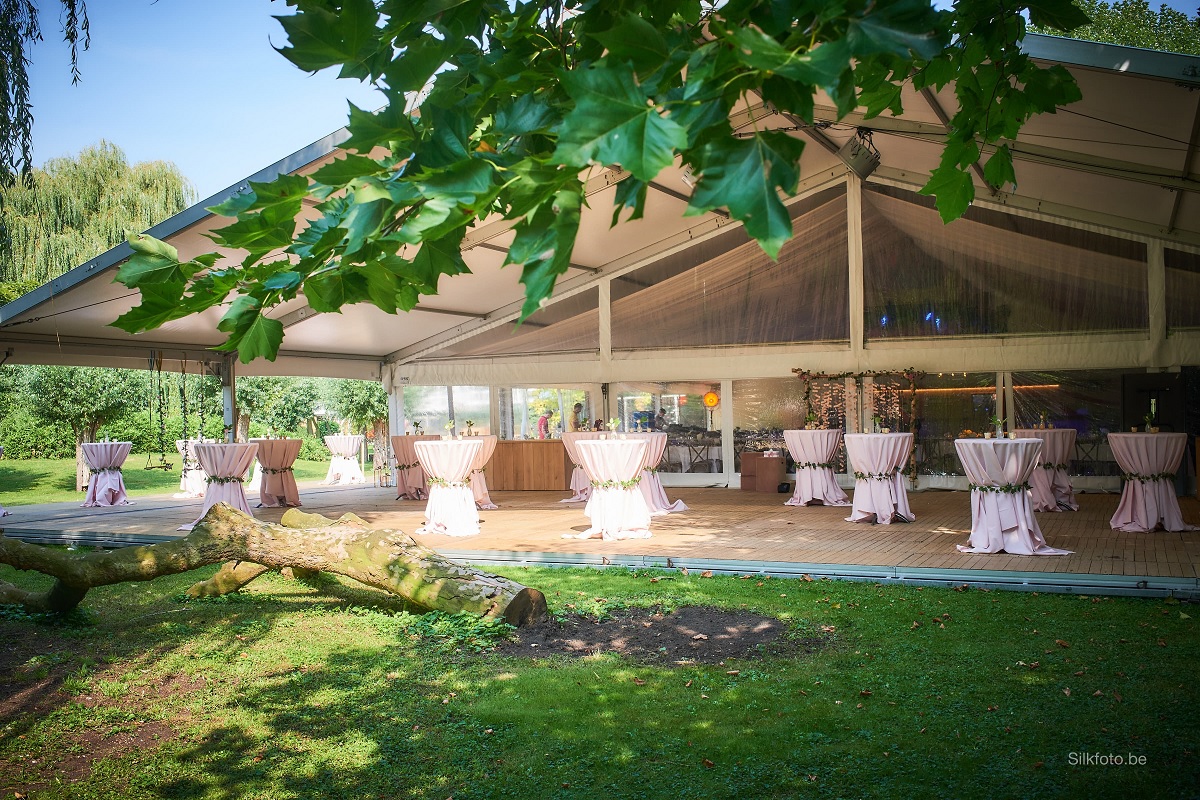 U kunt in deze originele setting terecht van half augustus tot midden oktober 2018.en hoeft zich verder geen zorgen te maken. Toilet, parking, belichting, ... alles is voorzien voor evenementen tot 200 personen. Bovendien is de tent ook nog eens voorzien van een terras met zicht op de prachtige tuin.