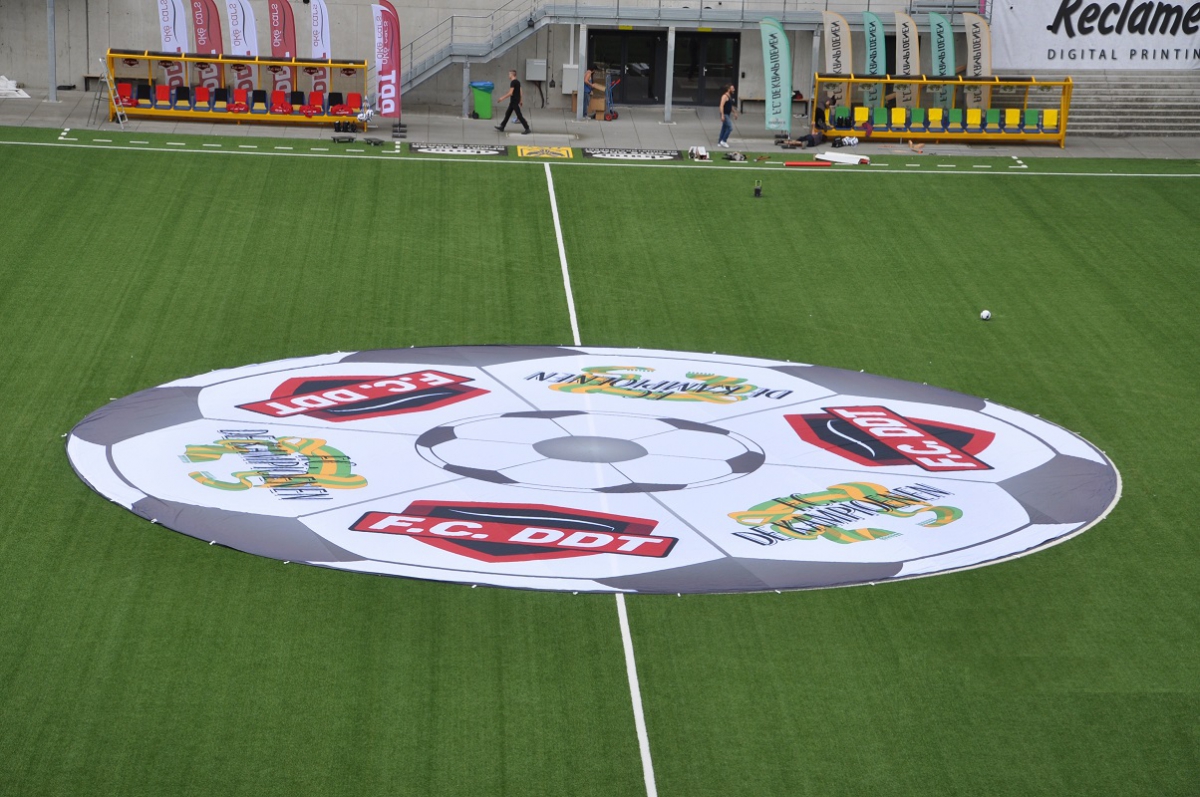 Een mooi voorbeeld van de kwaliteit en creativiteit van Publi-FDM zijn de groot formaat prints die in opdracht van productiehuis De Mensen werden gemaakt voor de promotie van de derde langspeelfilm van FC De Kampioenen. Voor de filmopnames transformeerde Publi-FDM Stayen, het voetbalstadion van STVV in Sint-Truiden, met niet minder dan 2.800 m² spandoeken in de kleuren van de caféploeg uit de populaire tv-reeks. Publi-FDM stond ook in voor het reclamemateriaal van DDT Oké Cars en het supporterscafé van Pascale. Het bedrijf leverde spandoeken en autostickers die bedrukt werden met de Boma- en DDT Oké Cars-logo’s. Daarnaast werden ook de reclameborden en beachvlaggen voor de promotie van de derde langspeelfilm voorzien door Publi-FDM.