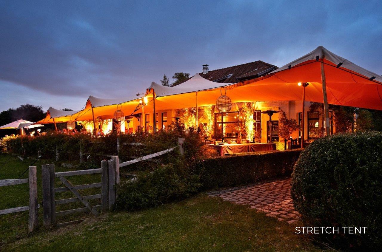 - Gebaseerd op de afmetingen van uw tent, krijgt u er de bistro lights en verwarming (terrasverwarmers of thermostaat verwarming) bij aangeboden om in de tent te plaatsen.