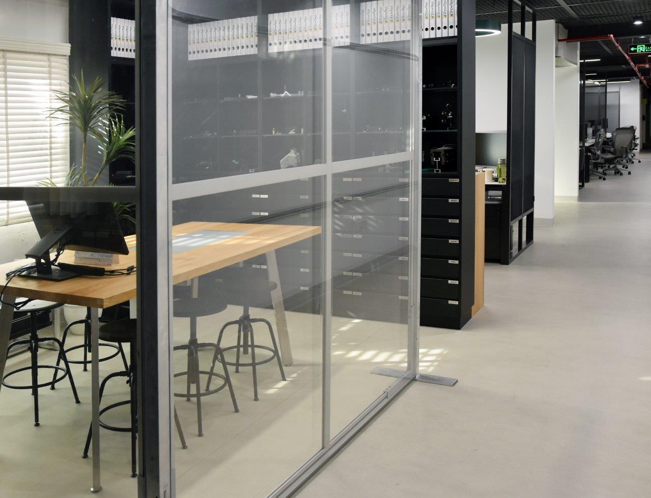 Mag het wat meer zijn? Met flexibele scheidingsgordijnen aan een rail verdeel je een open ruimte in veilige compartimenten die open en toe kunnen wanneer nodig. Een meer permanente oplossing, maar evengoed beschikbaar in een breed gamma aan materialen, in lijn met elk interieur. ShowTex bracht recent zelfs een speciaal gelaagd gordijn op de markt waarmee je zelfstandige werkplekken creëert die visueel én akoestisch geïsoleerd zijn van de rest van je team. Veiligheid, creativiteit en akoestiek in één.
