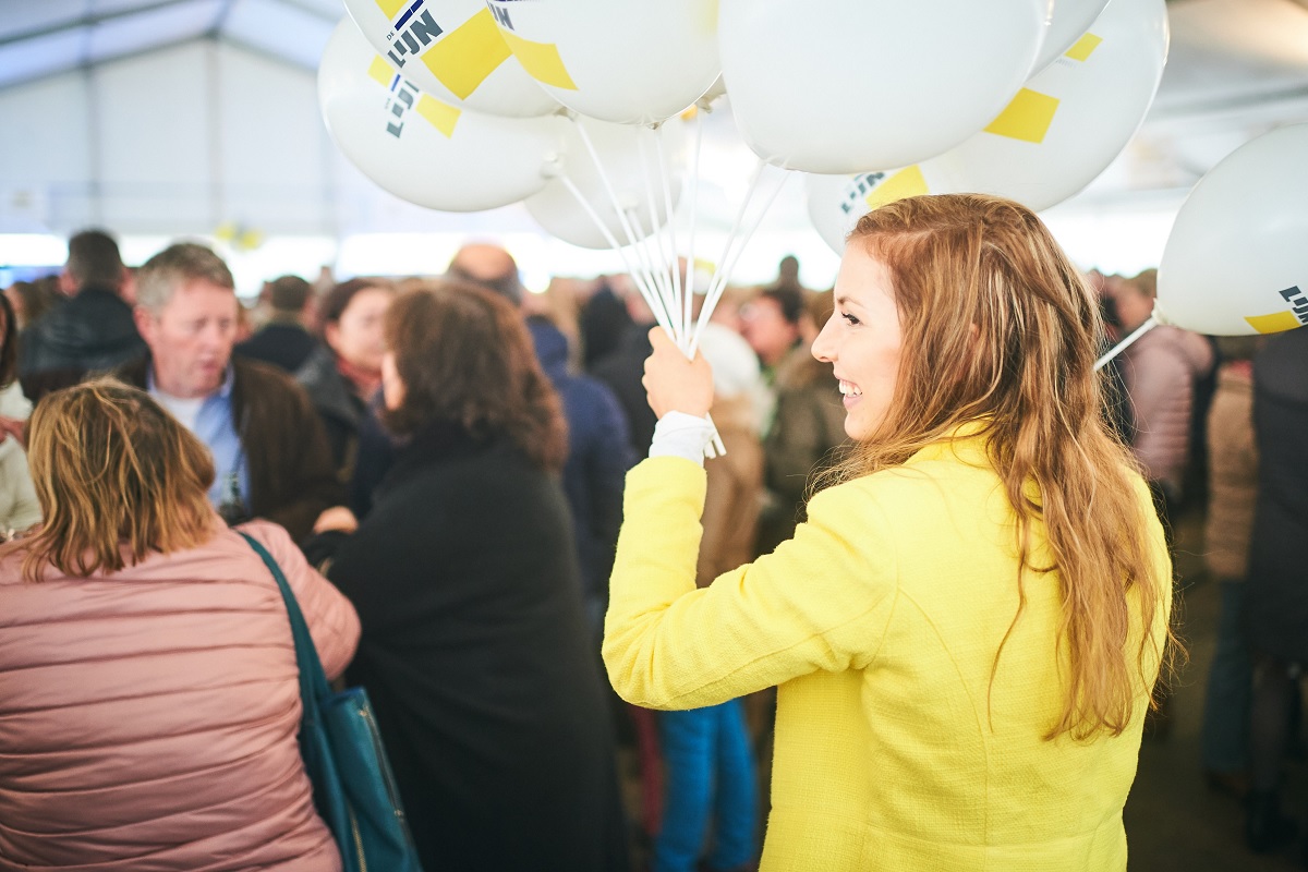En daarna was het tijd om te feesten: hapjes en drankjes, glittertattoos voor de allerkleinsten, een heerlijk samenspel van de Koninklijke Harmonie Zwijnaarde, gele en grijze balonnen overal …. In een ruime partytent van 40x25 meter werden de inwoners van Zwijnaarde voor twee uur lang eens goed verwend. Over een fantastisch buurtfeest gesproken … De Lijn en New Balls Please zetten werkelijk hun beste beentje voor.