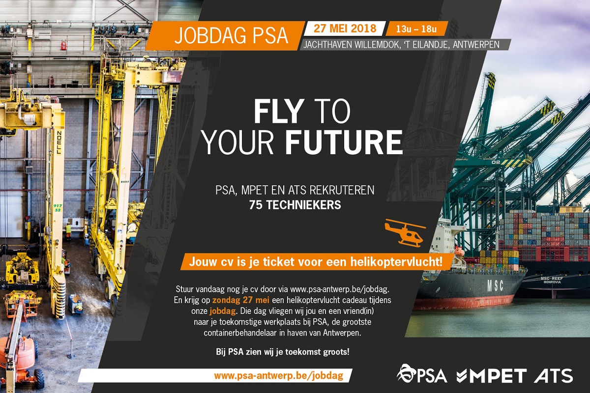 05 juni 2018Terminal operator PSA Antwerp is op zoek naar maar liefst 75 nieuwe techniekers. Een grote uitdaging die vroeg om een grootse aanpak. Het lanceerde daarom samen met live + communicatiebureau The Oval Office de rekruteringscampagne ‘Fly to your Future’ en een jobdag waarop sollicitanten per helikopter naar hun toekomstige werkplek in de Waaslandhaven gevlogen werden.