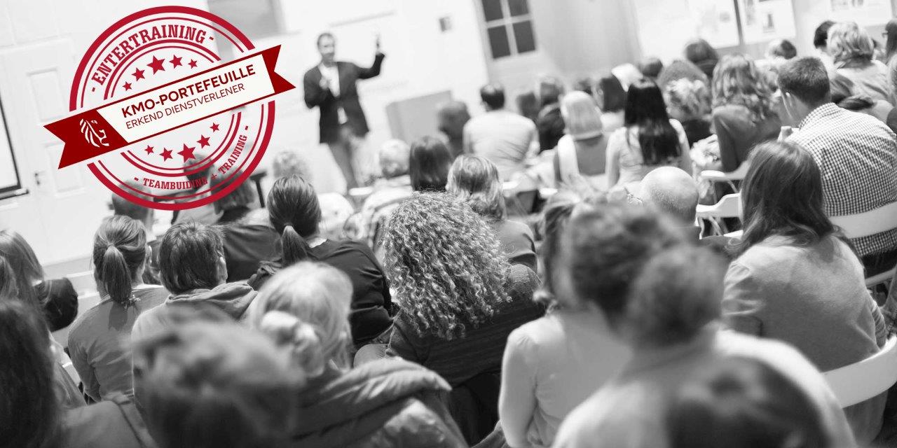De Entertrainingprogramma’s van Event Masters zijn KMO-gecertifieerd. Dit wil zeggen dat een Vlaamse KMO recht heeft op een korting tot 40% voor een Entertraining. Dat is een enorm prijsvoordeel. Boekt men een Entertraining mét locatie, dan komt dit voordeliger uit dan het boeken van de Teambuilding.