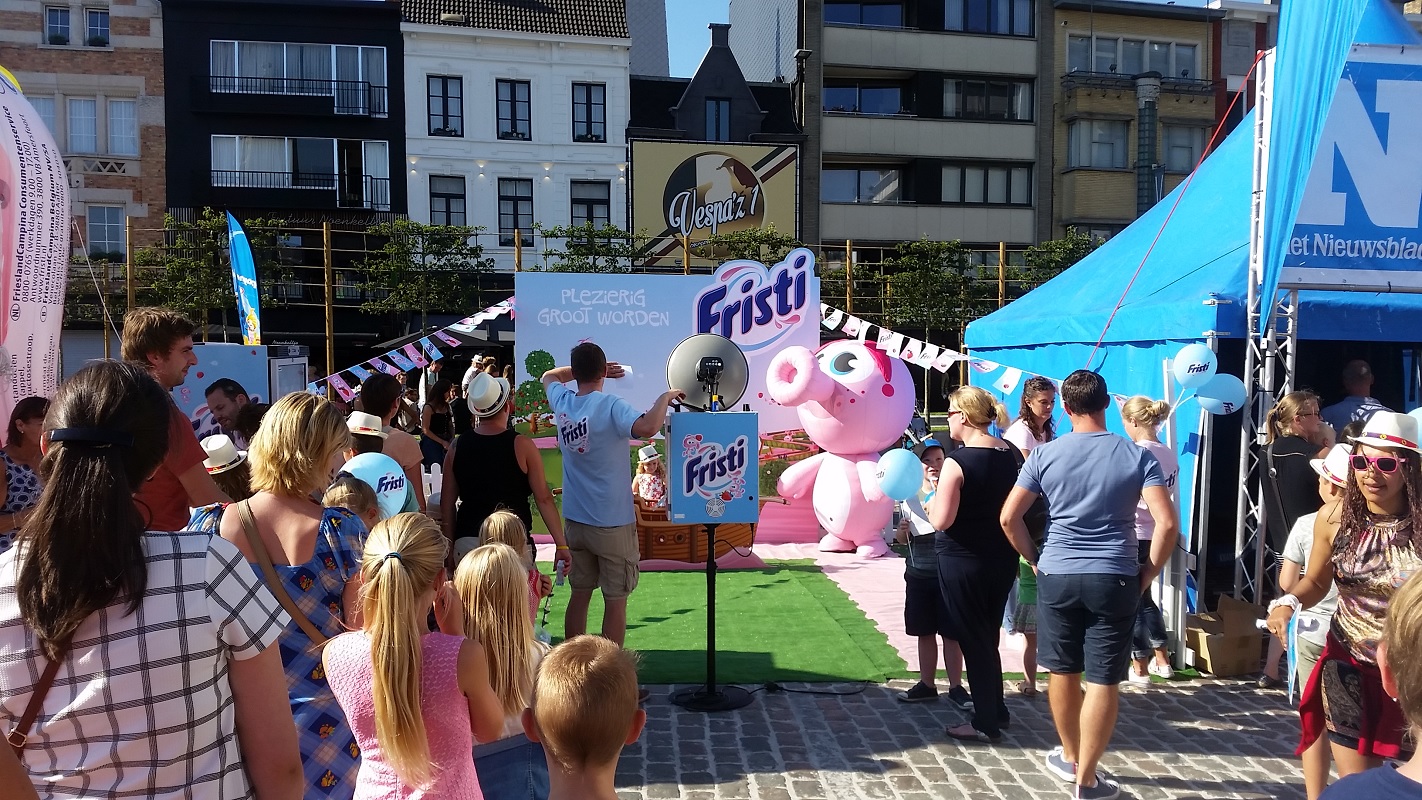 Omdat E-Demonstrations zo tevreden was over de inzet en de professionele aanpak van ‘de topteams van Hostessenservice met wie het fijn samenwerken is’, kreeg Hostessenservice ook de opdracht om voor hun klant Fristi een topteam samen te stellen. Deze keer trokken de hosts en hostessen naar Roeselare om er kinderen te animeren én lekker te verwennen op de Ketnet Zomertoer.