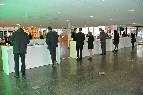 Door de barcode bij het onthaal te scannen wordt de bezoeker vlot geïdentificeerd en kan een gepersonaliseerde badge geprint worden. Deze kan voorzien worden van een verschillende lay-out afhankelijk van het type bezoeker en een gepersonaliseerd programma op de achterzijde.
