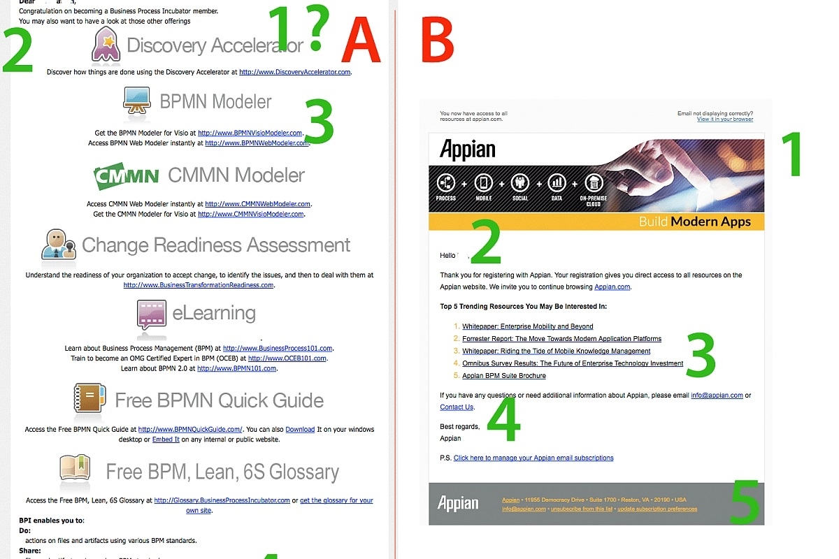 14 september 2015Het was toeval, maar bij een verkenningsronde naar software voor het noteren van zakelijke processen, schreven we ons twee keer na elkaar op twee plaatsen in voor een 'probeerversie'. Uiteraard krijg je dan netjes – zoals de wetten van e-mailmarketing vereisen – een welkomstbericht. Alleen verschillen ze beiden behoorlijk van elkaar. We hebben ze even op de weegschaal gelegd.