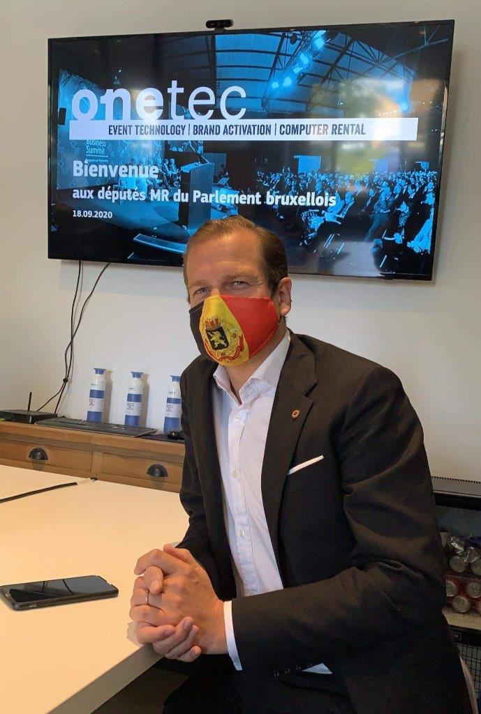 23 september 2020Op vrijdag 18 september mocht OneTec-Eventattitude een delegatie van MR-afgevaardigden van het Brusselse parlement ontvangen, vergezeld door hun parlementaire attaché. Deze afgevaardigden begaven zich op het terrein om een toonaangevend bedrijf in de evenementensector te ontdekken en meer te weten te komen over de uitdagingen van de coronacrisis.