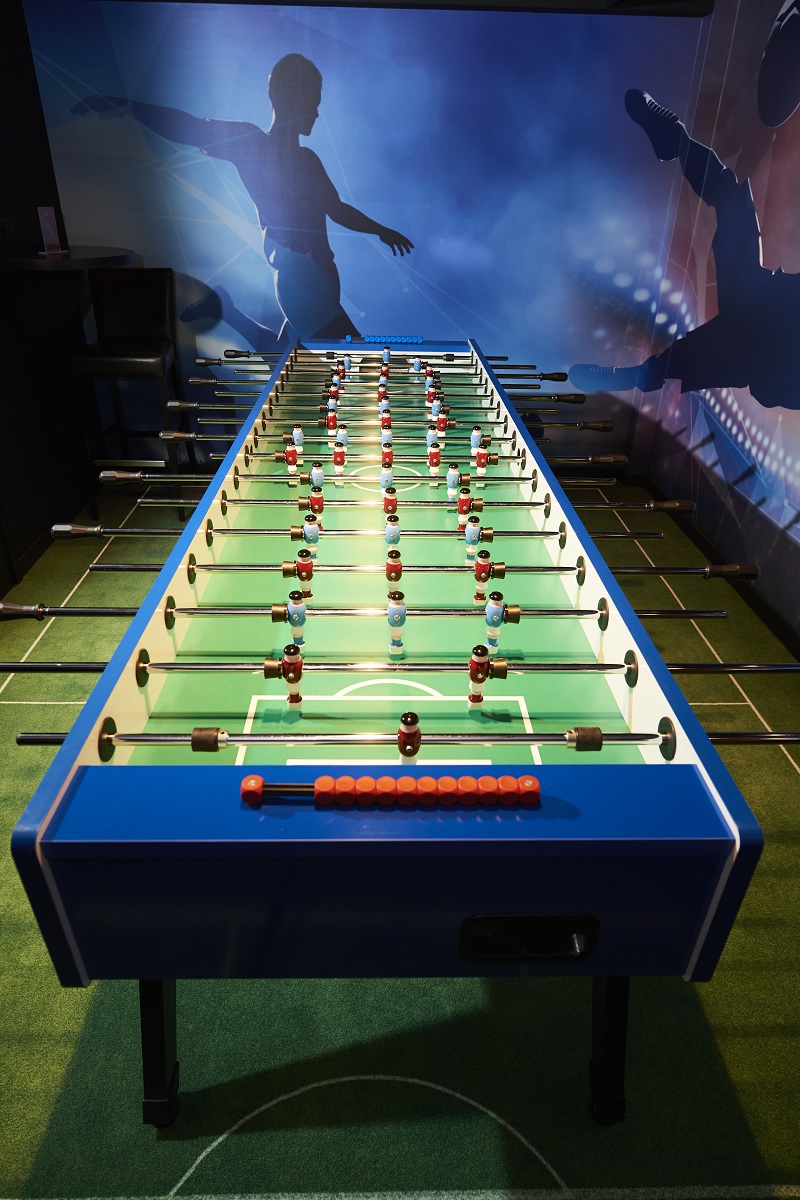Compete in a game of shuffleboard using our professional shuffleboard. Try your skills in giant table soccer allowing you to play together with maximum 8 people at the same time. Team up for a competition of darts or get hooked up in virtual reality in the separate play area equipped with a wide assortment of games.