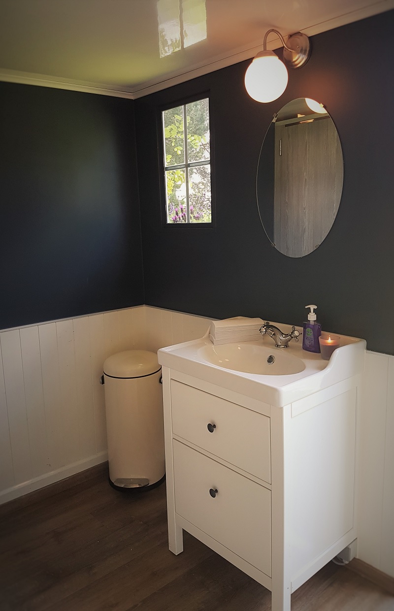 The Water Loo biedt een ontzettend knap alternatief voor de traditionele mobiele toiletten. Van buitenaf lijkt de wagen op een cottage huisje met ramen, een bloembak en vintage schuurverlichting. De binnenkant is voorzien van mooie, witte, retro wastafels, licht eiken vloeren, witte, houten lambrisering en warme, kobaltblauwe muren.